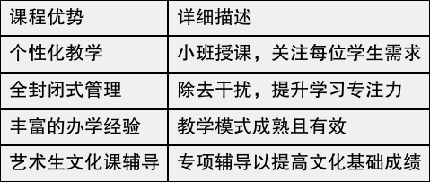 在课程设置方面,师大中高教育融入了“老师严教”的理念,同时实施全封闭式管理,为学生营造了一个专注的学习环境。这种管理模式有效减少了外部干扰,使学生能更好地集中精力复习。同时,他们针对艺术生设置了文化课辅导,帮助这些学生在学业和特长发展上兼顾。