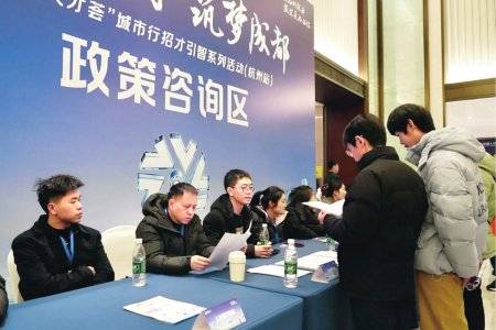 “才聚天府·筑梦成都”——“蓉漂人才荟”城市行招才引智系列活动(杭州站)上,求职者正在咨询。图据人才成都微信公众号