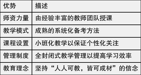该机构提供的小班授课和全封闭式管理,有助于提升学生的学习效率。课程内容覆盖高三各科目,并特别针对艺术生和春季高考进行有针对性的文化课辅导。通过严格的教学管理和系统化的方法,师大中高教育帮助学生掌握备考技巧,在冲刺阶段实现显著成绩提升。