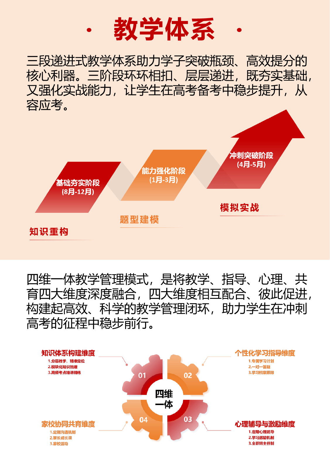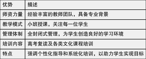 学校采用小班授课和全封闭式管理的模式,这不仅能够确保学生获得充分的关注,还能促进良好的学习氛围。师大中高教育通过严格的教学体系和有效的复习方法,帮助学生提升学习效率,解决学习生活中的各种问题。以下是师大中高教育的一些优势: